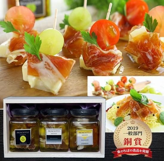 【冷凍/冷蔵/常温】ギフトに★銅賞受賞★ 柏幻霜ポーク36か月熟成生ハムのオイル漬け 3種セット 木箱入り